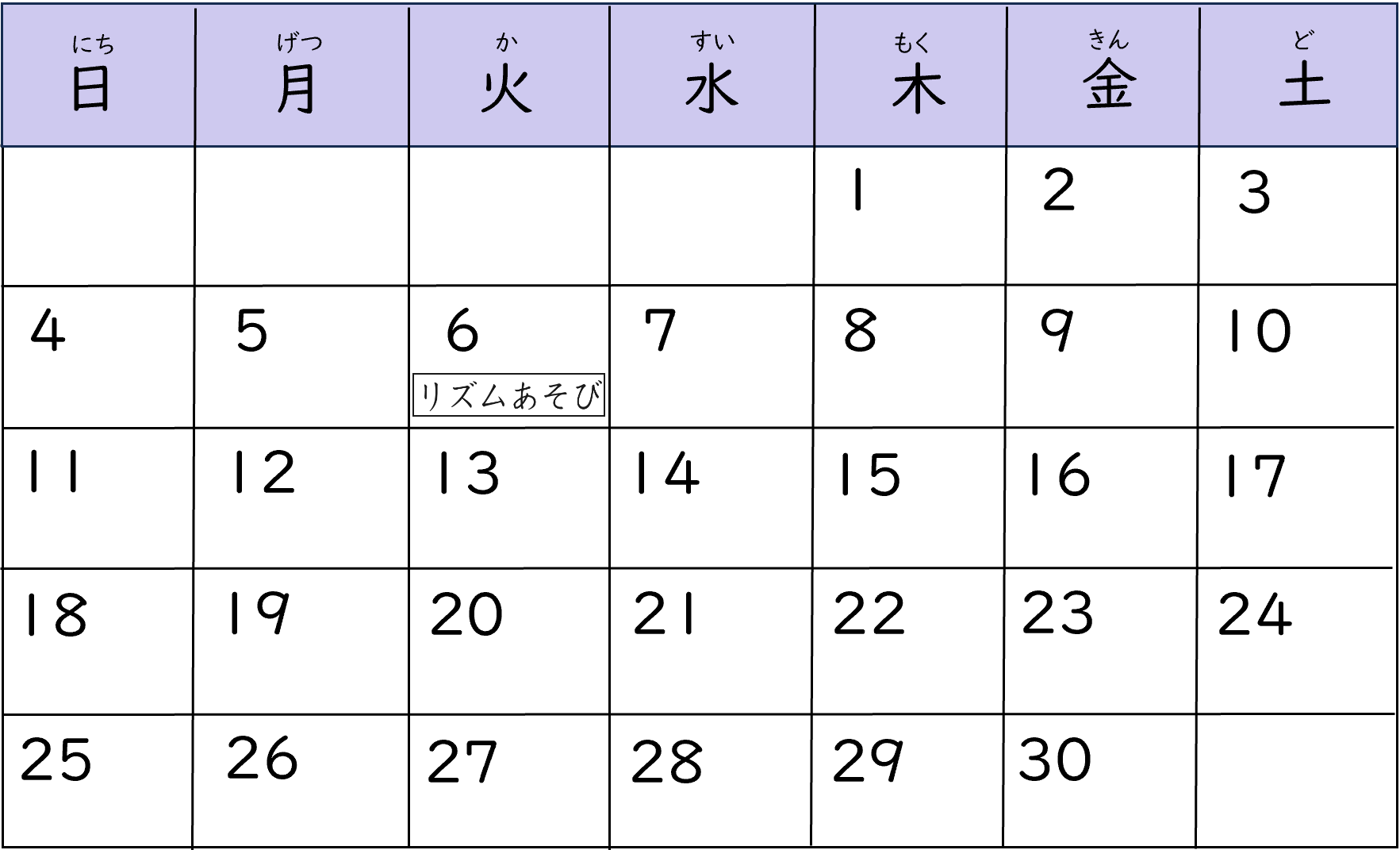 はリズムあそびです。 よていをカレンダーにはりましょう