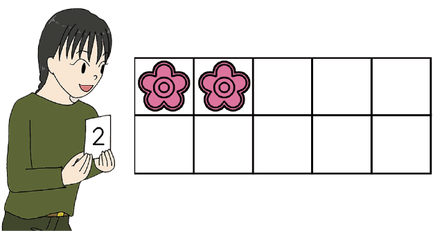 すうじと おなじかずの おはじきを おいてみよう。