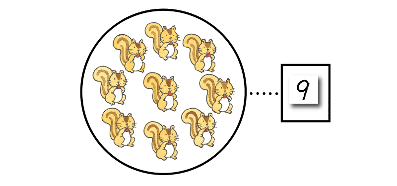 すうじのカードを つかって リスのかずを こたえてみよう。