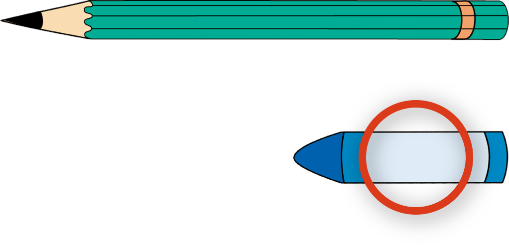 えんぴつと あおい くれよんは どっちが みじかいかな? みじかいほうをえらぼう