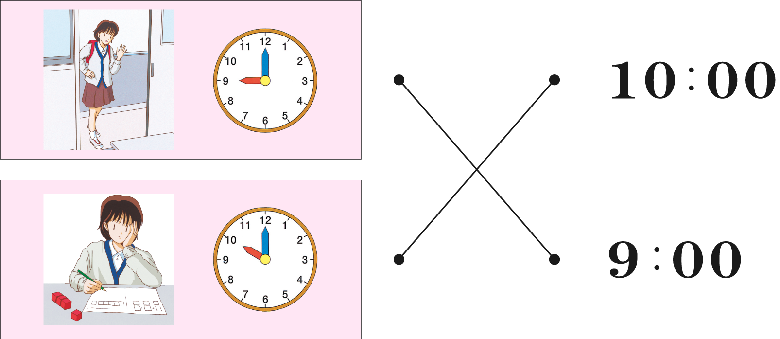 おなじじかんは どれかな